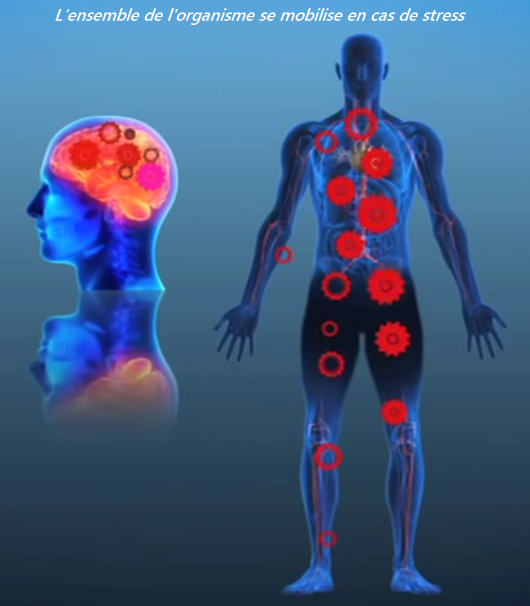 En fait quand nous sommes face à un "stresseur" notre organisme se met en marche de la tête aux pieds.